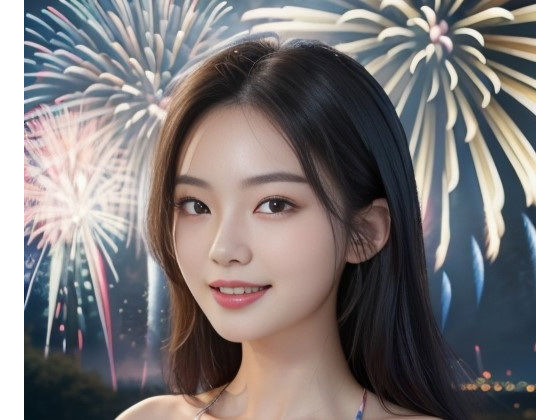 美女and花火を観てる感じになるように生成してみました♪
